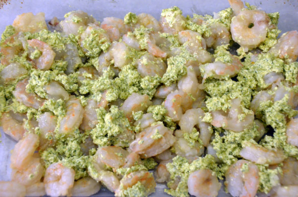 4. Toss shrimp with butter mixture in a 9 x 13 non-reactive baking dish