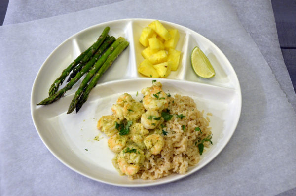 Garlic & Cilantro Baked Shrimp, Coconut Lime Rice and Sesame Roasted Asparagus