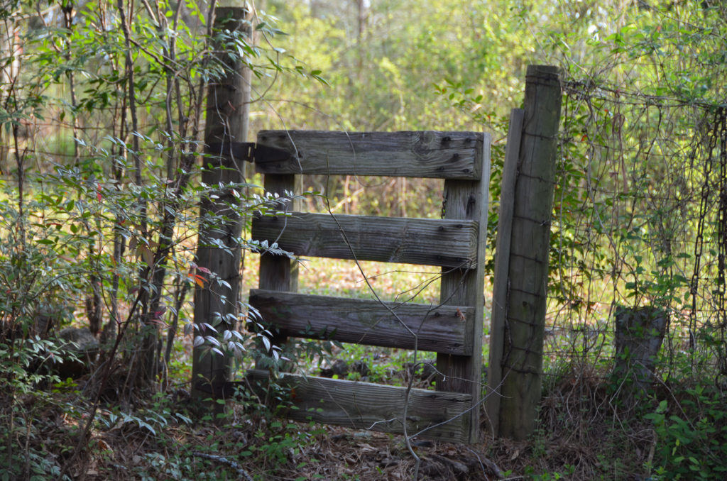 We jumped back in the car and followed them to the other side of the property, walked through an overgrown area, through a gate…