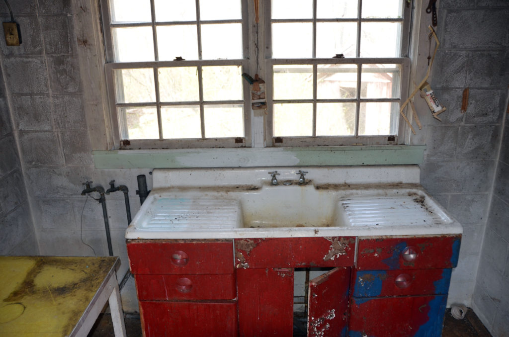 Oh if these walls could talk I’d love to hear the conversations in the canning shed…oh how I’d love if she could teach me how. I didn’t ever have a grandmother…there are things I wish I had learned from sweet ol’ wrinkly hands. It took hours to clean out the canning shed bit by bit so I could even get in to the cupboards and close enough to touch the well-loved cast iron sink.