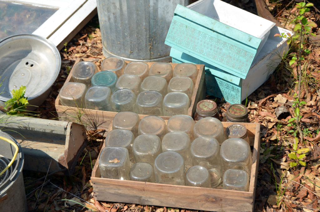 And when we finished exploring this treasure they led us to more…through the overgrowth and prickly blackberry bushes…an entire homestead awaited us. Gulp. Be still my beating heart. Her mothers canning shed…still filled to the brim with her hard work preserved in mason jars…